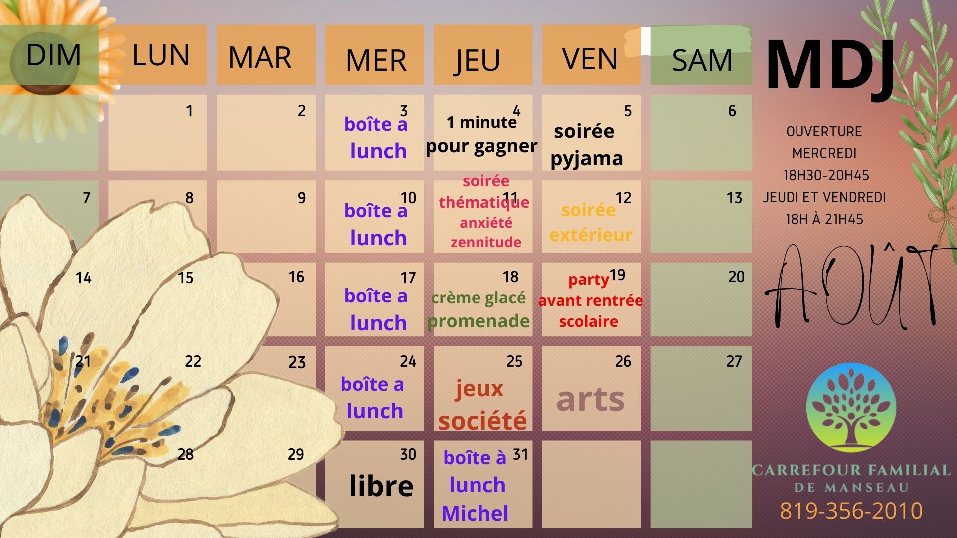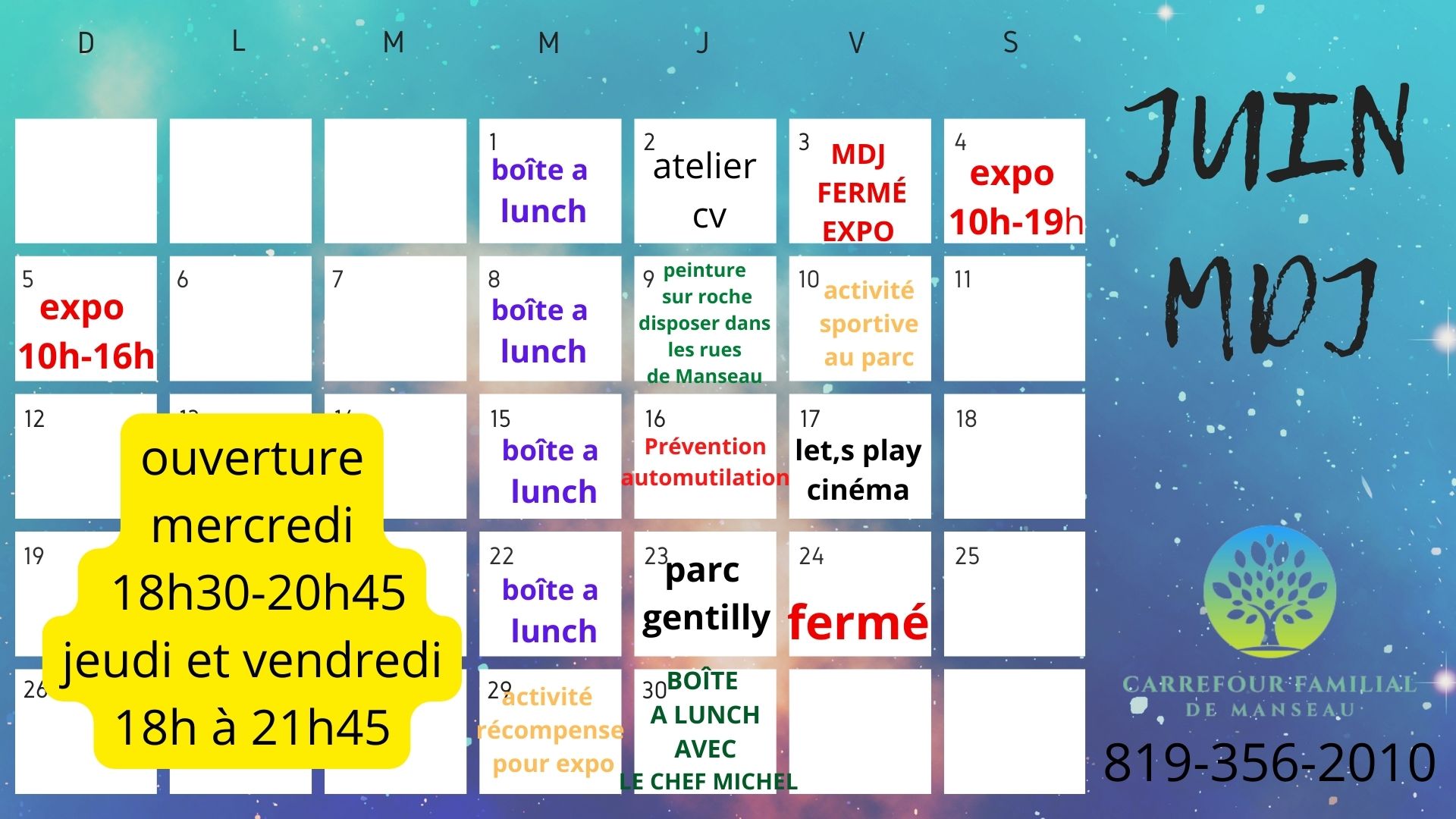 Mercredi : 18h30 à 21h Jeudi et vendredi: 18h à 22h
